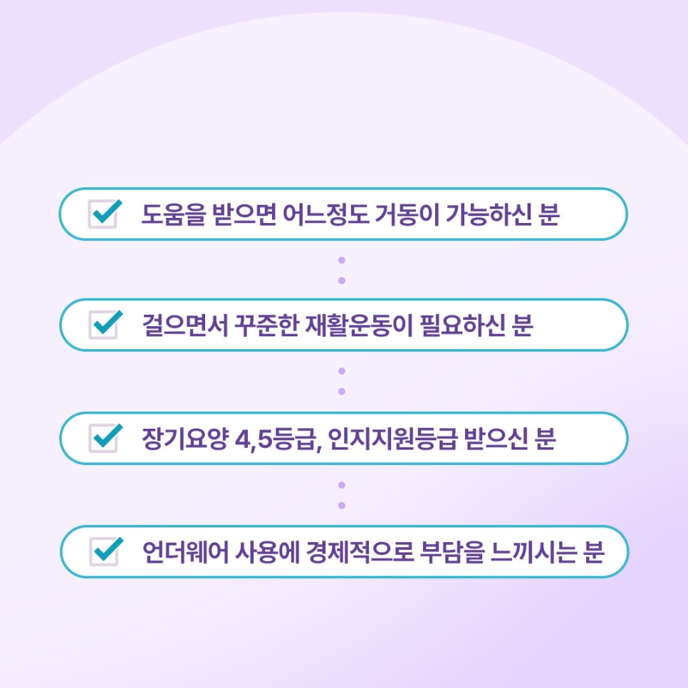 어느정도 거동이 가능함에도 불구하고 겉기저귀를 사용하고 계시다면,