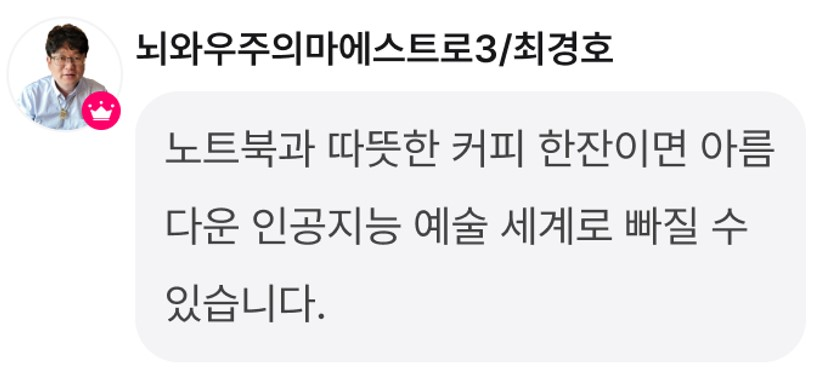 " 생성형AI를 통해 예술작품을 만드는 모임을 운영중인 '최경호'입니다."