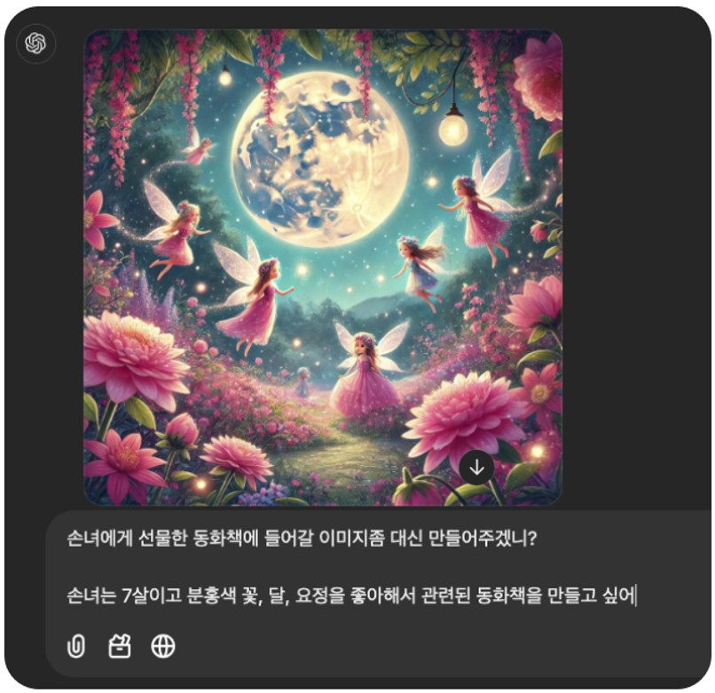 예를 들어 생성형AI를 통해 손녀에게 선물할 동화책의 줄거리와 삽화를 만들거나