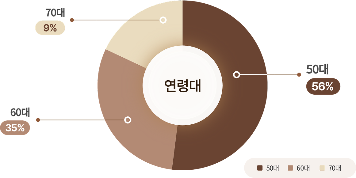 40세 이상만 가입하실 수 있으며 주 연령대는 50-60대 입니다.